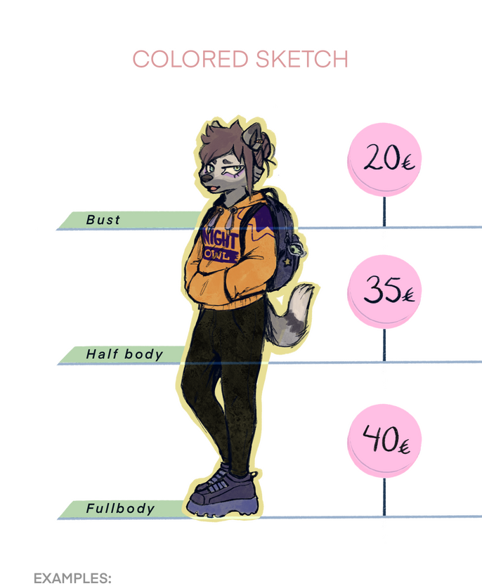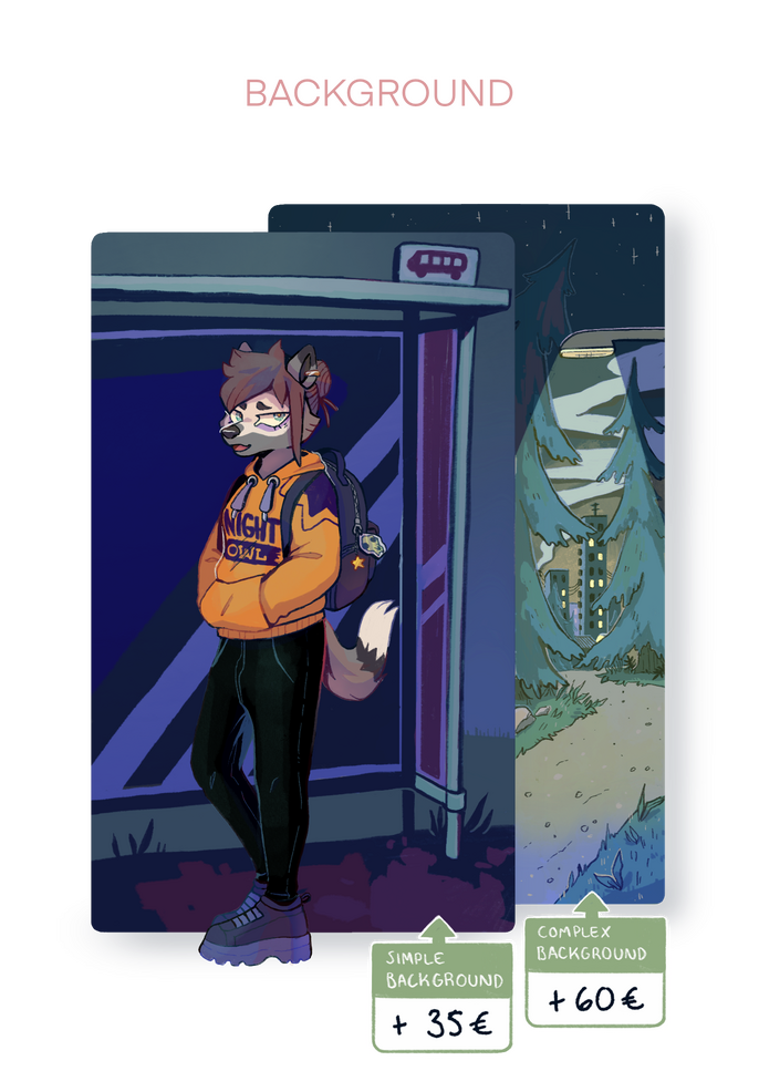 Commission type:(ex. Digital art, Flat fullbody, no background) (Badge) (Reference sheet + additional features)Character(s) refs:(You must have at least one visual reference or picture of your character/s.)Details/Poses/Notes/Extras:(Detailed description what kind of idea you have in your mind. You can also give me free hands but any kind of moodboards of your characters aesthetic or description of their personality would be very helpful.)Payment type:(Paypal, Bank transfer, MobilePay.)