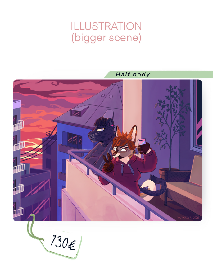 I have attached google form link here and also in the each commission types page. Forms are not available when commissions are closed. ➝ Form for Digital art and Reference sheet commissions ➝ Form for Badge commissionsYou can also commission me by dm me on twitter (@sepistys) or my email: sepiscomm(at)gmail.com by filling this Order form below.